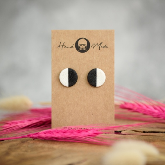 Dotsy to minimalistyczne kolczyki z subtelną fakturą, wykonane ręcznie z profesjonalnej glinki polimerowej, ze sztyftem ze stali szlachetnej. Są lekie, dość elastyczne i dzięki temu wygodne oraz odporne na uszkodzenia.
