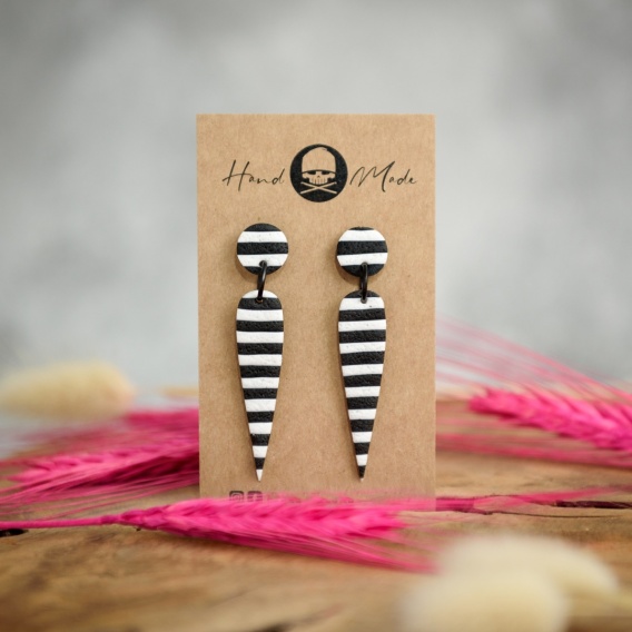 To minimalistyczne, wiszące kolczyki z subtelną fakturą, wykonane ręcznie z profesjonalnej glinki polimerowej, ze sztyftem ze stali szlachetnej. Są lekkie, dość elastyczne i dzięki temu wygodne oraz odporne na uszkodzenia.