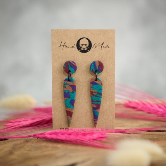 To minimalistyczne, wiszące kolczyki z subtelną fakturą, wykonane ręcznie z profesjonalnej glinki polimerowej, ze sztyftem ze stali szlachetnej. Są lekkie, dość elastyczne i dzięki temu wygodne oraz odporne na uszkodzenia.