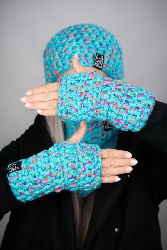 Jednokolorowe, ręcznie robione, bezpalcowe rękawiczki a'la mitenki. Wykonane są z bardzo miękkiej i miłej w dotyku włóczki. Można je nosić same, albo z cienkimi rękawiczkami pod spodem.