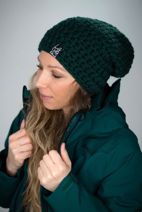 Jednokolorowa czapka MONO jest ręcznie robiona, z wysokiej jakości włóczki, co czyni ją miękką i miłą w dotyku. Czapka jest długa, mięsista i ażurowa. Gruby luźny splot sprawia, że czapka świetnie się układa i oddycha.